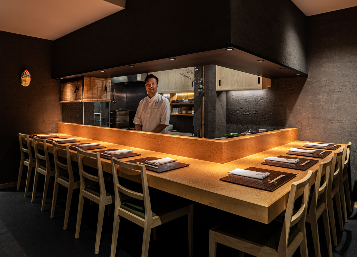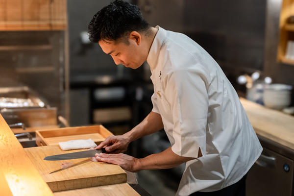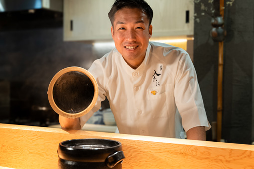 調理師学校へ通う傍ら、敬愛する「なにわ料理 有(旧・喜川 有尾)」で和食の腕を磨く。その後、「老松 喜多川」でコースの何たるかを学び姉妹店、「十六」で料理長を務める。
