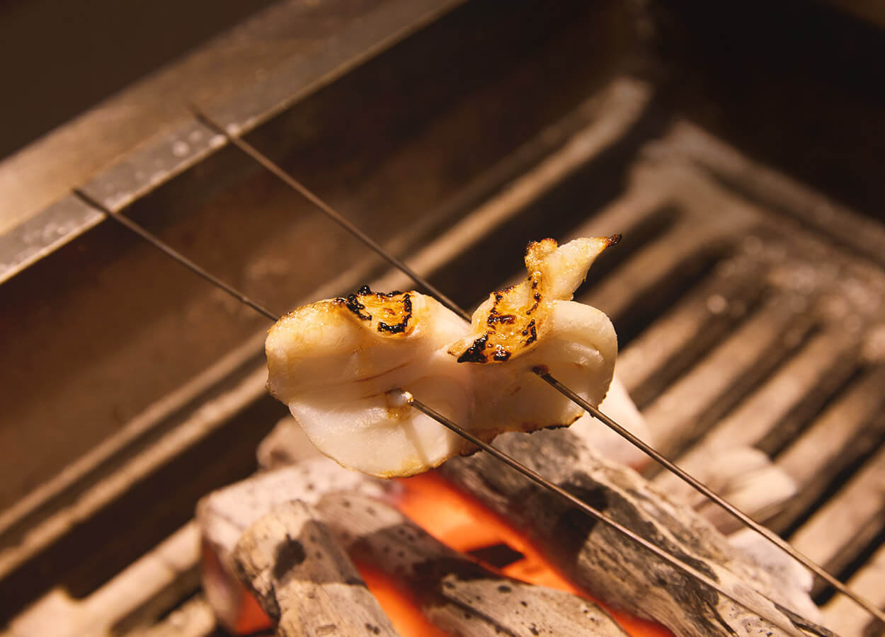 店の屋号にもなっている『割鮮』。鮮度のよい旬の魚介を、時には藁焼きでご用意します。