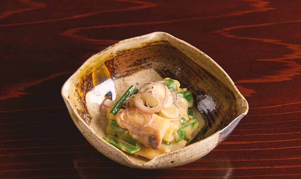 コースのスタートにお出しする一品。季節によって、冷菜か温菜をご用意させていただきます。