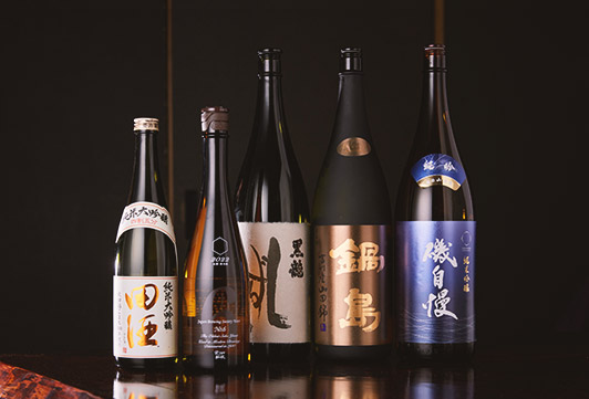 お出しする品に合わせた日本酒を豊富に揃えておりますので、好みなどがございましたら、どうぞおっしゃってください。